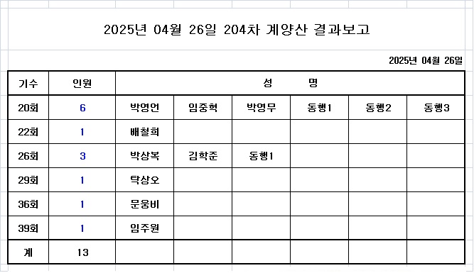 2025년 04월 26일 204차 계양산 결과보고