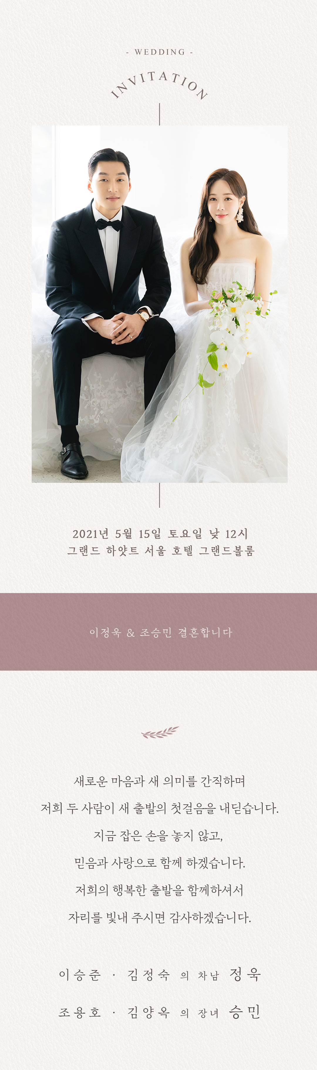 이승준(고24회) 본회 부회장의 차남 이정욱군의 결혼식에 초대합니다.